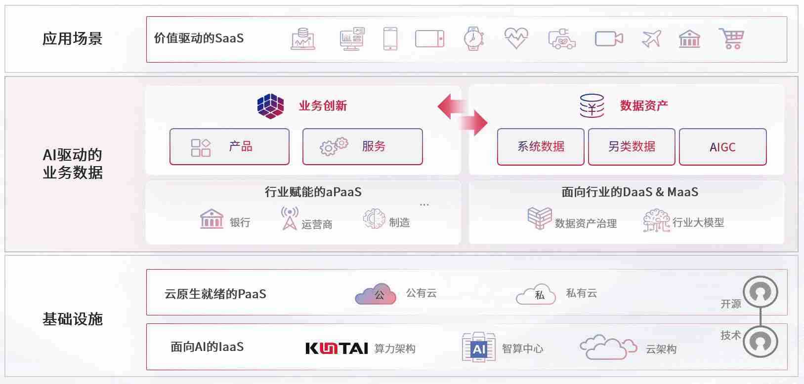 数字时代,,围绕企业数字化转型的关键要素,,EZPAY钱包数码开创性的提出数云融合战略和技术体系框架,,,,着力在云原生、、、、数字原生、、、、AI原生和信创产业上架构产品和服务能力,,为处在不同数字化转型阶段的快消零售、、、汽车、、、、金融、、医疗、、、、政企、、教育、、、运营商等行业客户提供泛在的敏捷IT能力和融合的数据驱动能力,,构建跨界融合创新的数字业务场景和新业务模式,,助力企业级客户建立面向未来的核心能力和竞争优势,,,全面推动社会的数字化、、智能化转型升级。。。