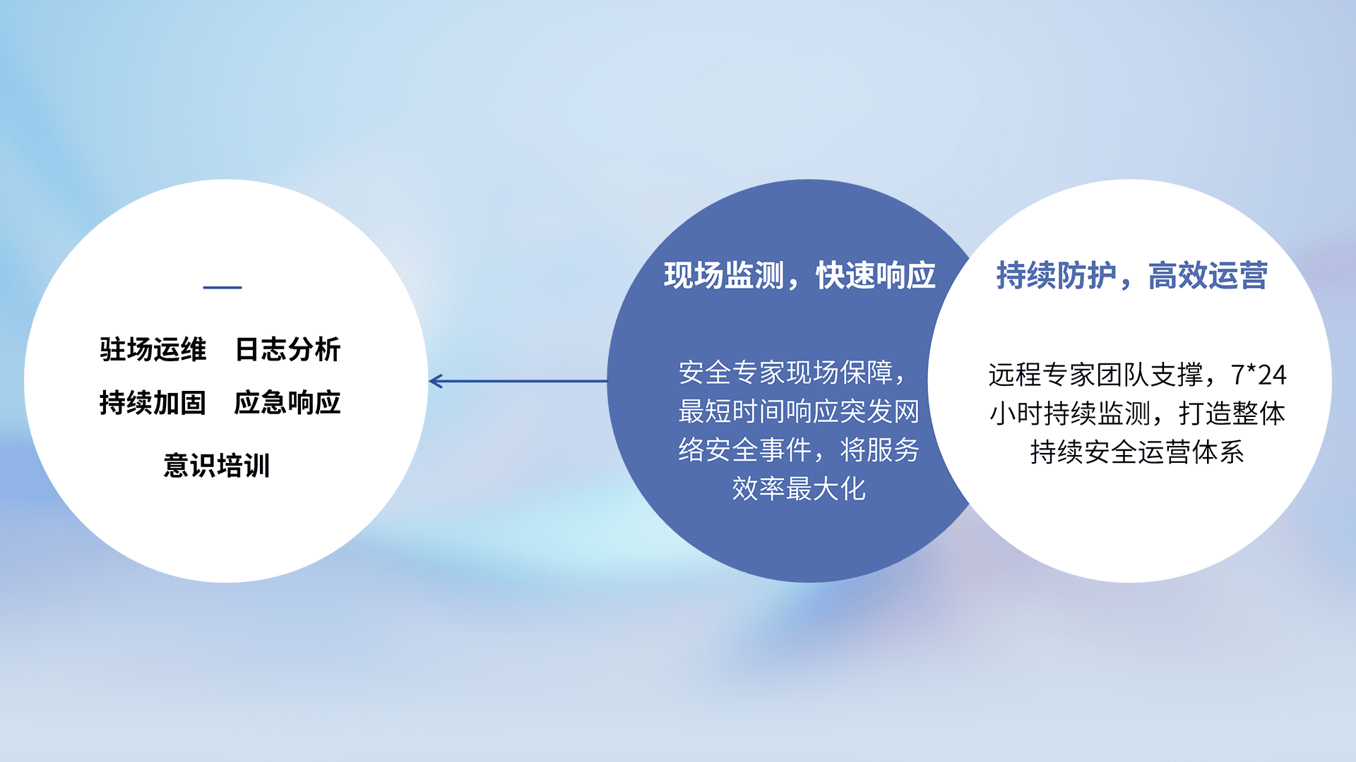 针对客户行业特性,,,提供专属的一站式安全管理服务,,,,帮助客户全面感知网络空间威胁,,,,通过安全专家的线上、、线下防护支持,,,实现风险闭环,,,将安全保障常态化,,,为客户打造常态化安全运维运营服务。。。。